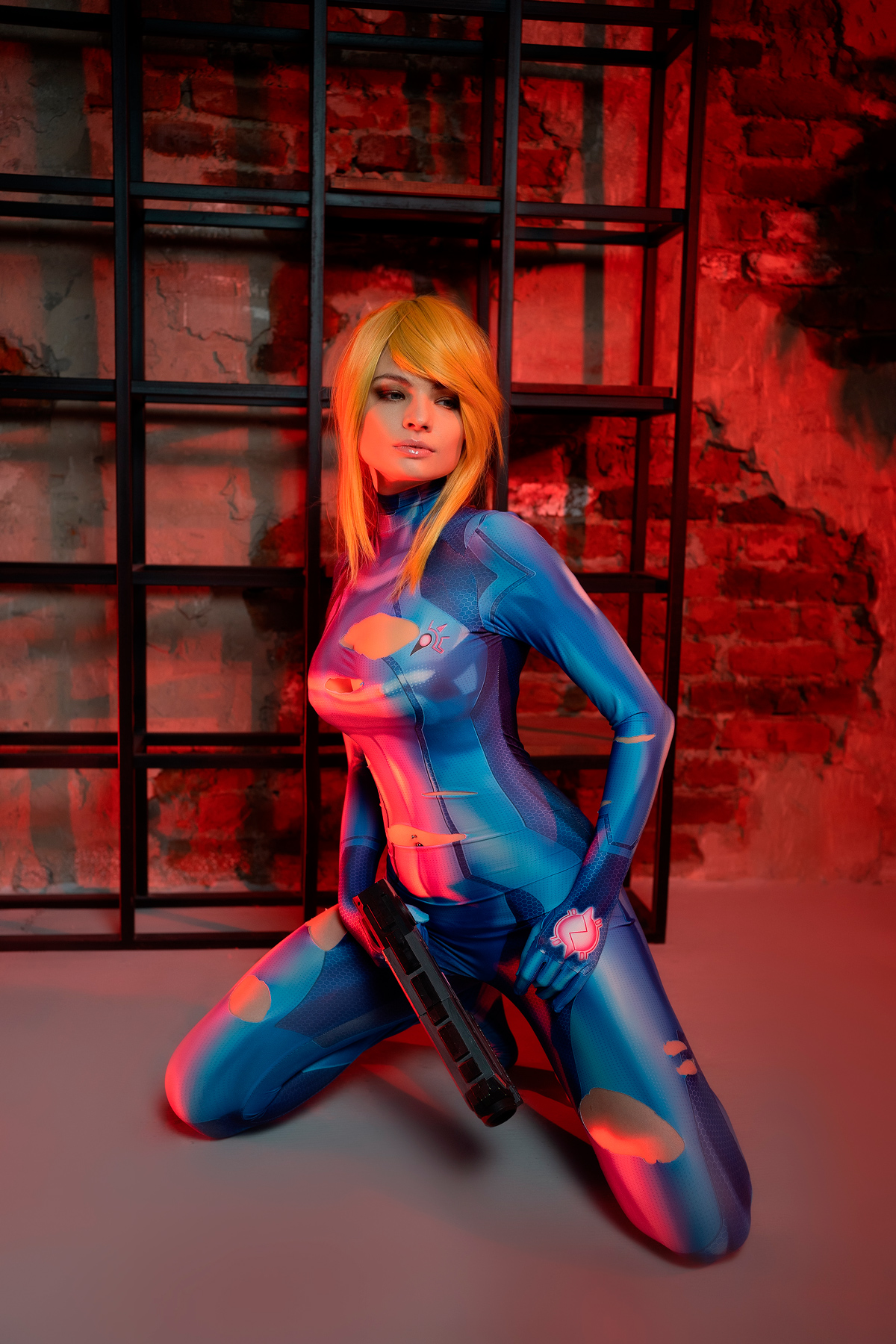 Samus Aran Kneeling — Zero Suit & Blaster by